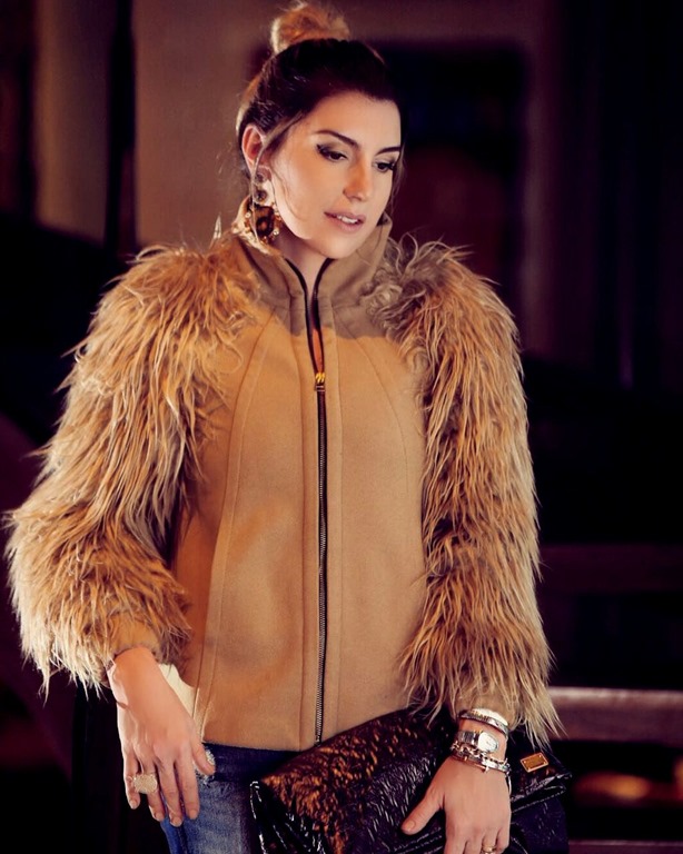 Muito legal ver como ela brinca com seu closet! A mesma peça ela usou da 1a. vez com esse vestido dourado DOLCE GABBANA em look festa. Ficou uma peça super especial, e foi o comentário da noite !