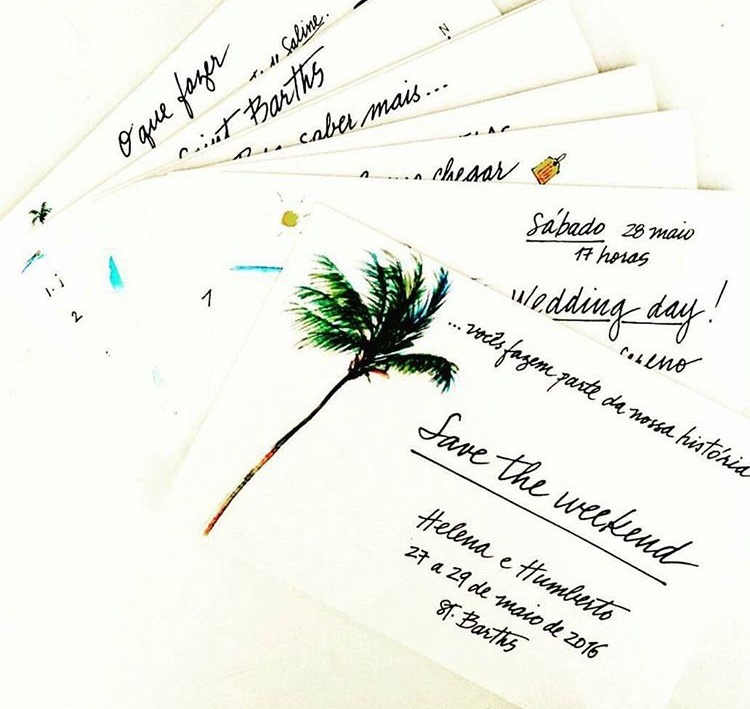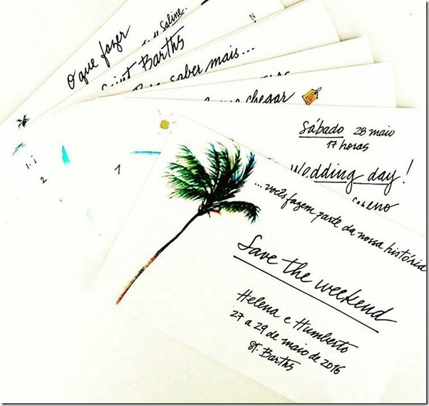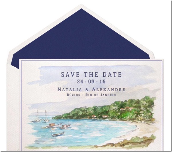 Naty Vasconcellos vai se casar em Búzios e pede às suas convidadas vestidos em tons pastéis clarinhos ( verde água, azul claro, rosê… ) que criam um visual leve e muito lindo! ( Repare que ambos os convites já eram aquarelas, tendência que começou exatamente há 2 anos e fica muita adequada para casamentos de dia em locais inusitados )