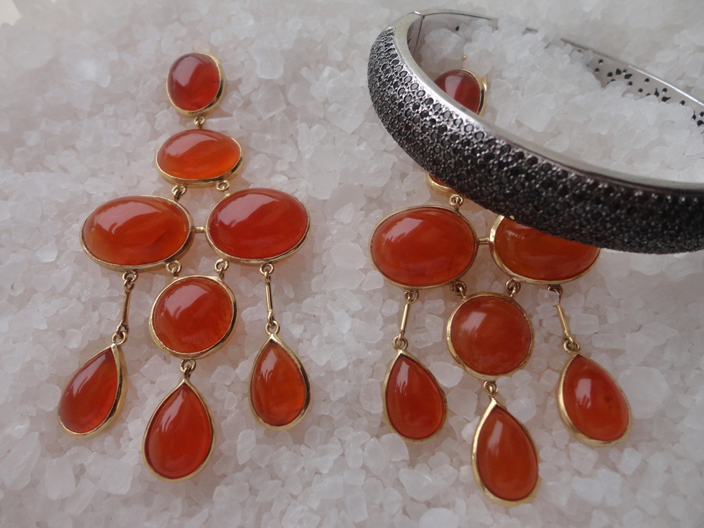BRINCO EM OURO AMARELO E RODOCROSSITA
