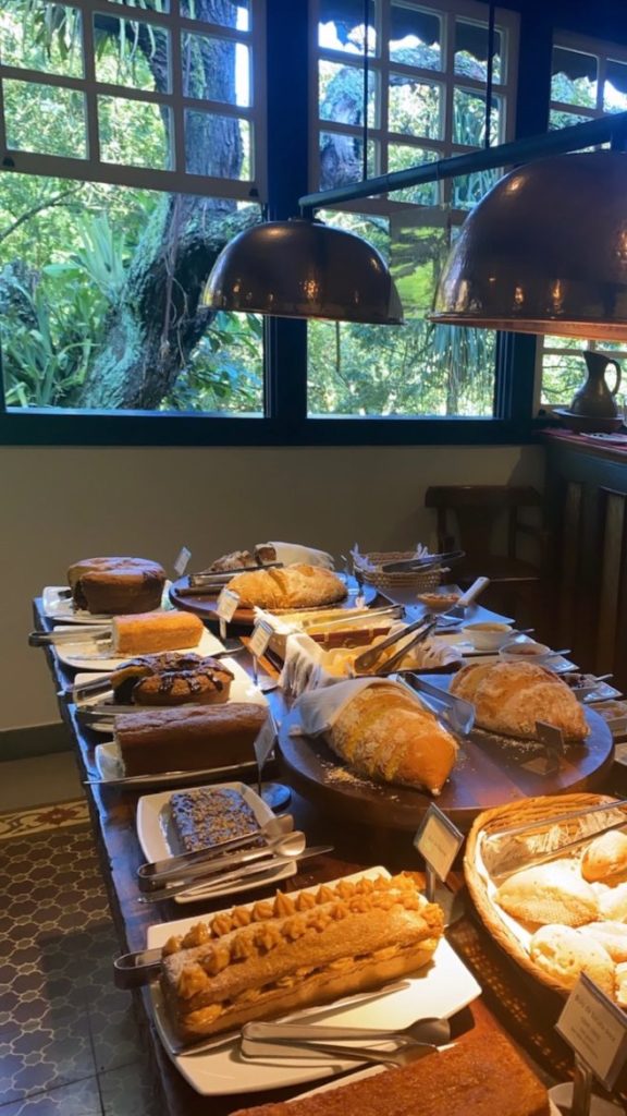 O café-da-manhã é bem mineiro, com todos os pães , bolos e quitutes feitos no local.