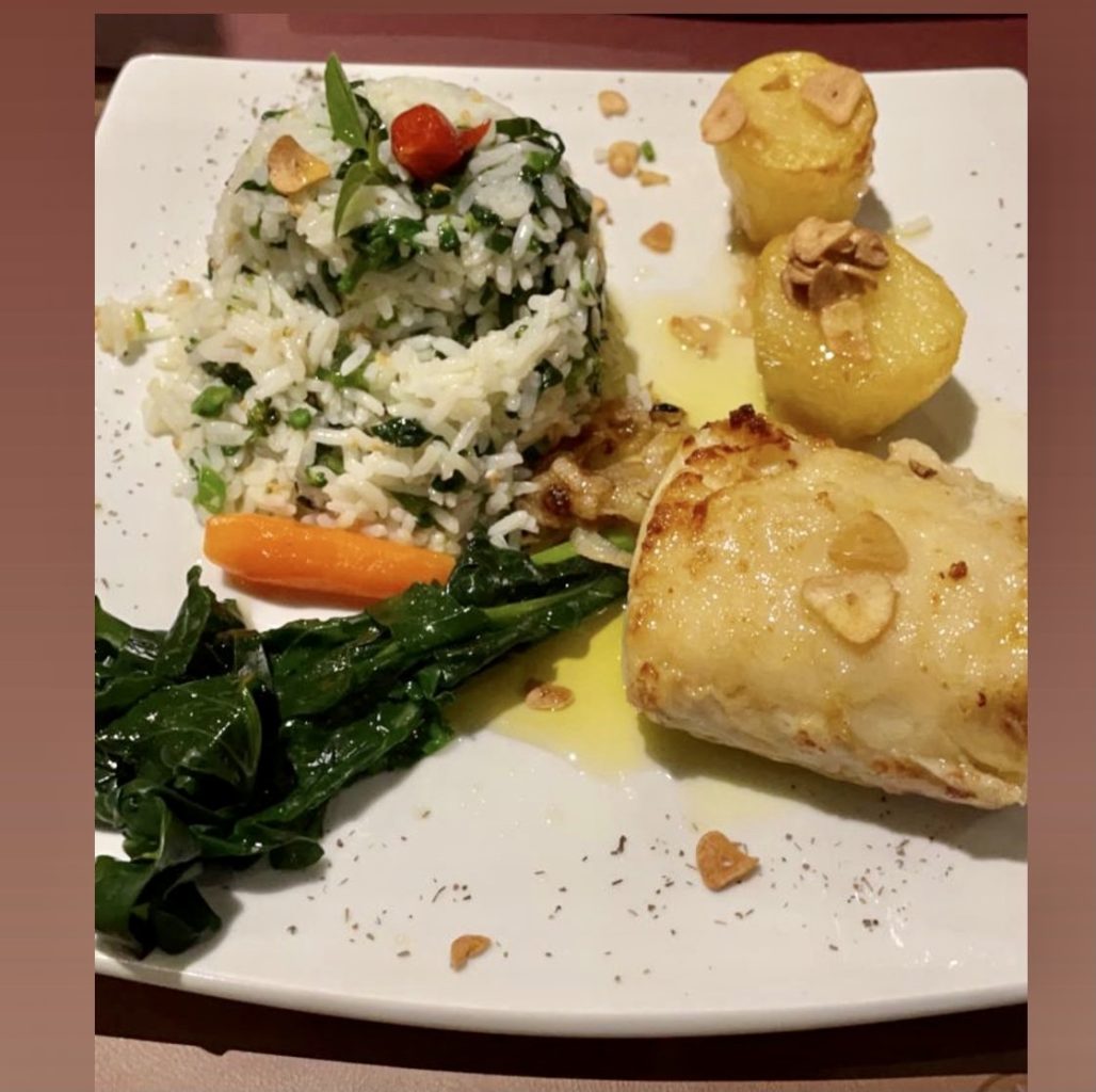Servem o jantar no bistrô, com pratos da culinária internacional.