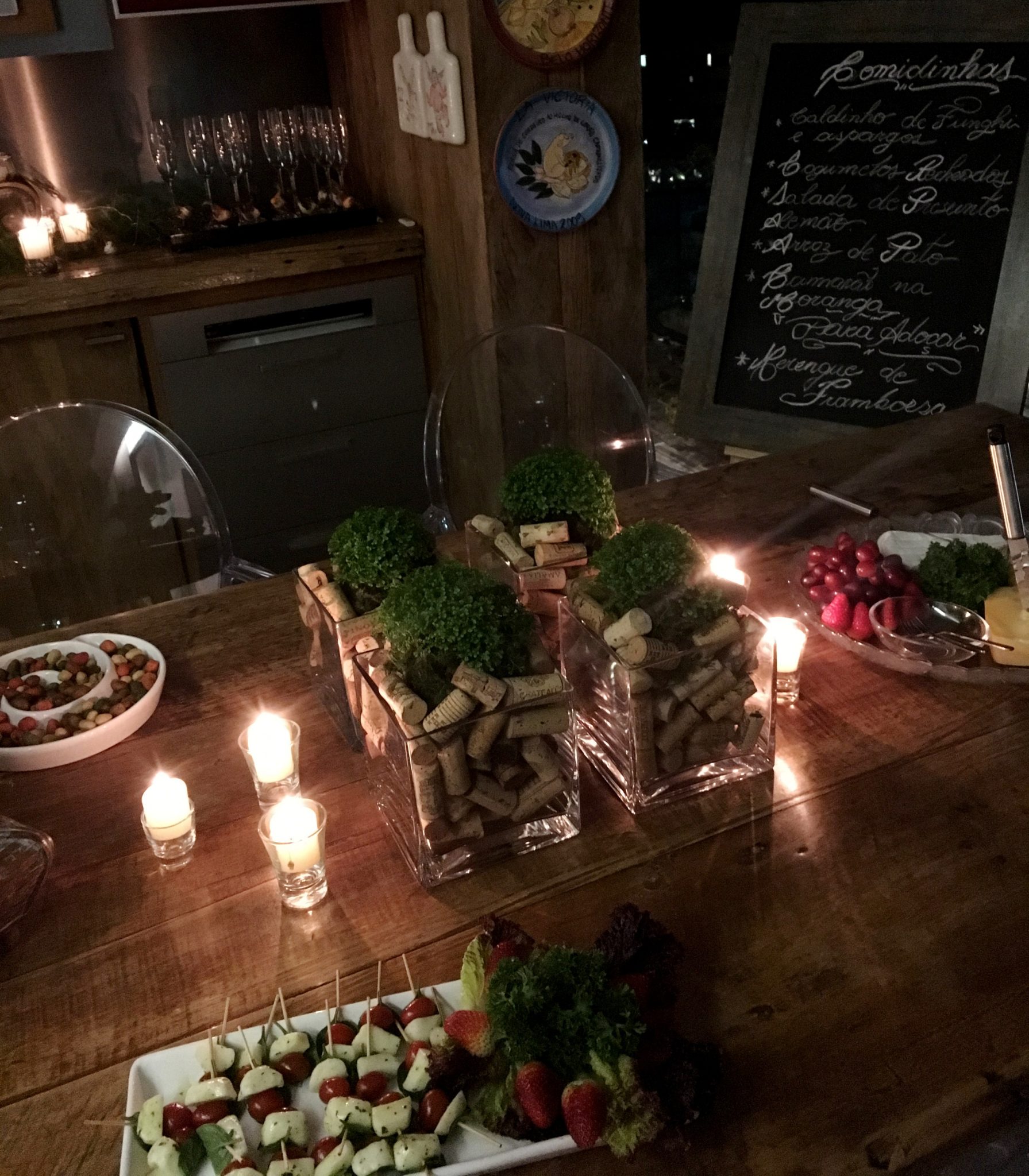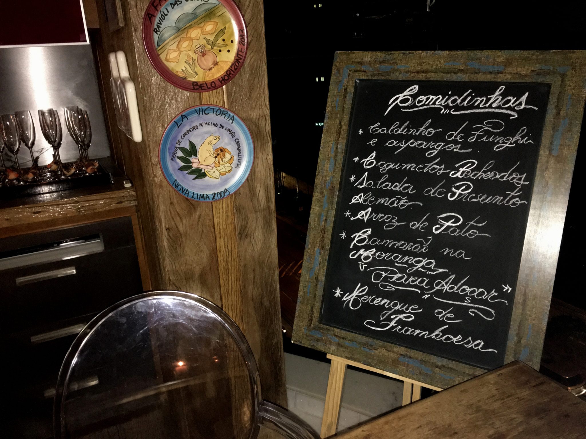 Na extremidade da mesa , esse quadro negro sinalizava a ordem dos pratinhos da degustação.