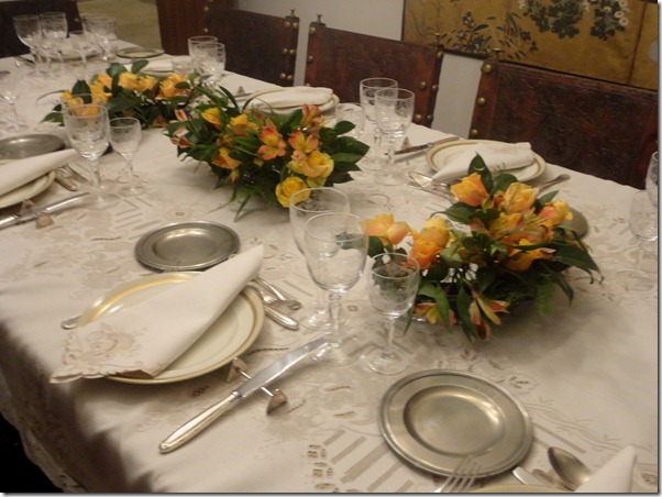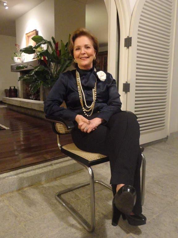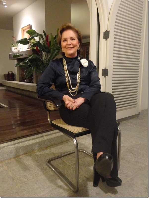 Vera é a elegância em pessoa – na aparência ,na sua casa ,na inteligência e mais ainda, no trato com as pessoas. As flores da casa tem seu toque e a mesa é linda!!! ( com as louças gravadas com as iniciais do anfitrião e a prataria gravada com as iniciais dela ).