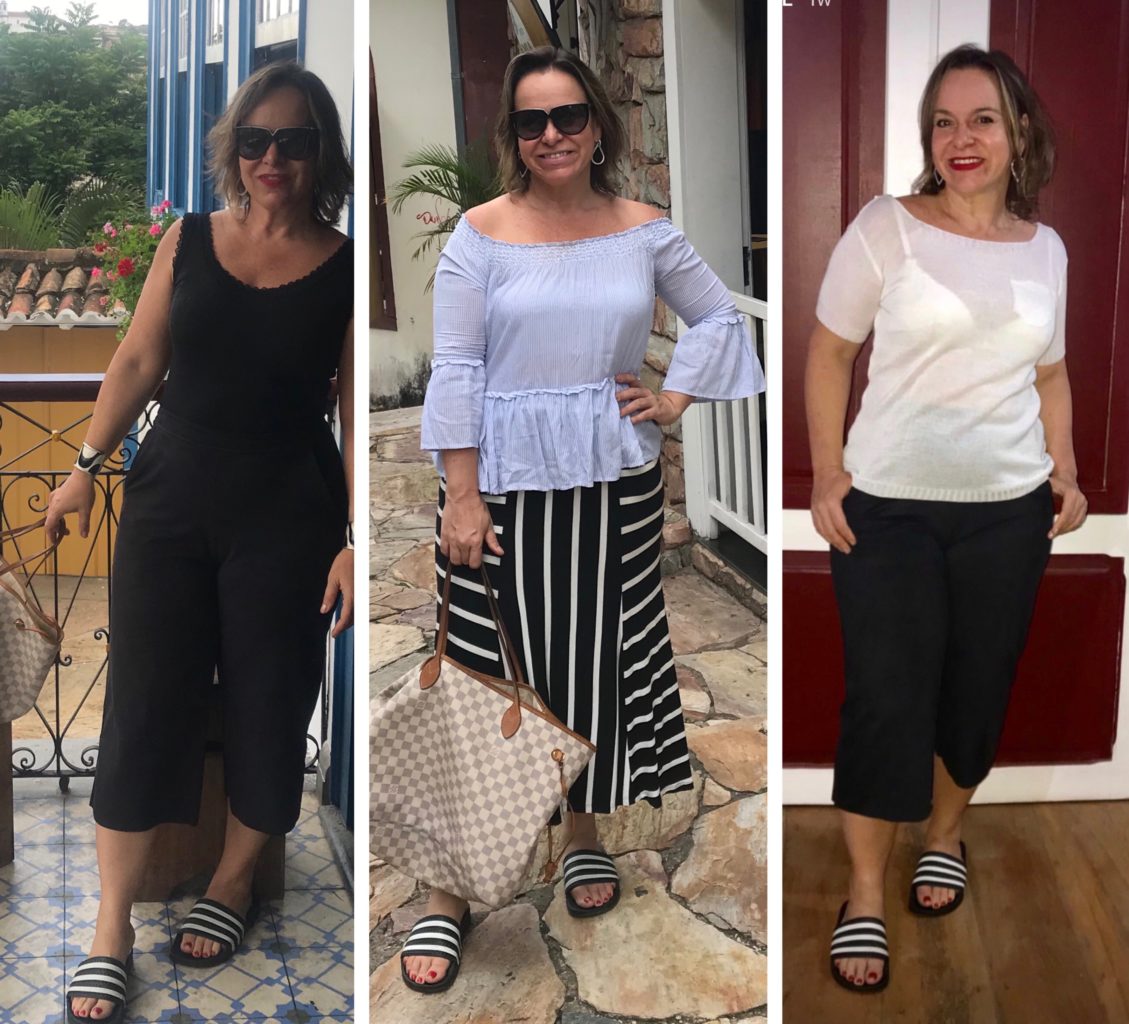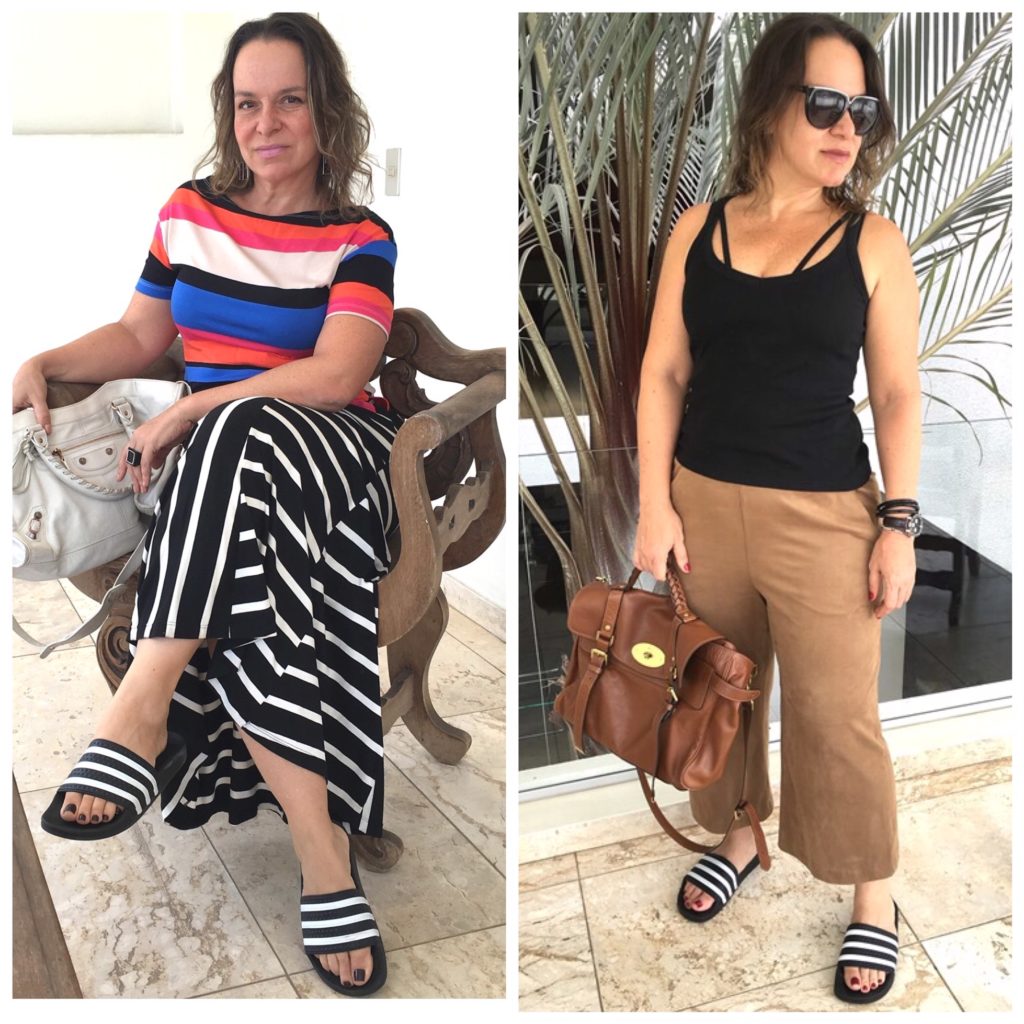 No 1o, um abuso de LISTRAS para todos os lados e no 2o. um look comfy and cool com PANTACOURT .  Se você clicar em cada link azul vai abrir possibilidades reais de movimentar o seu closet com ousadia, usando as coisas que você certamente já tem.