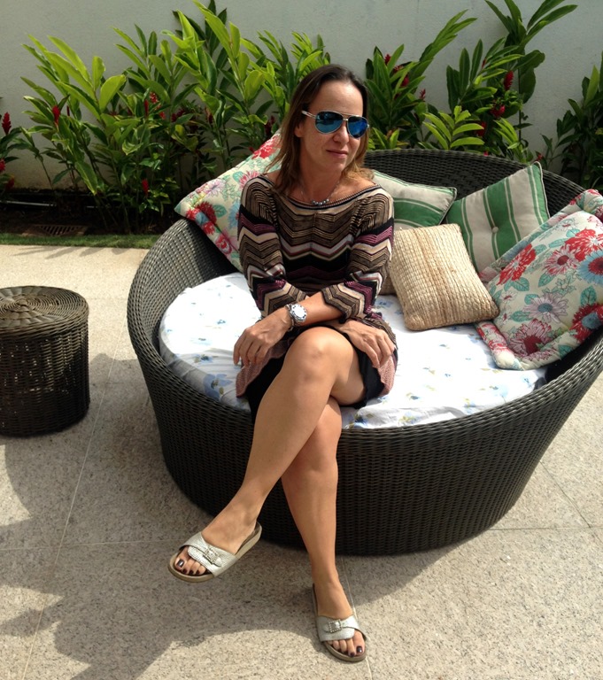 Esse modelo fashionista em borracha da ADIDAS funciona muito bem para andar no calçamento de pedras irregulares de lá. Usei os mesmos acessórios , inclusive o mesmo brinco todos os dias.