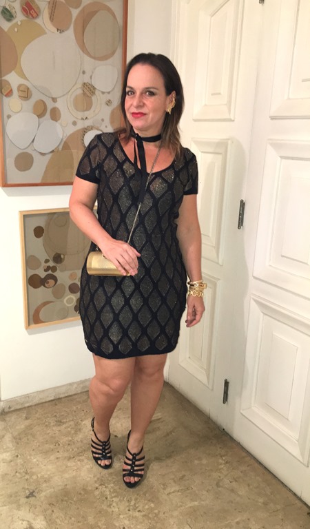 vestido lurex SIBERIAN – clutch vintage – sandália PIERRE CARDIN