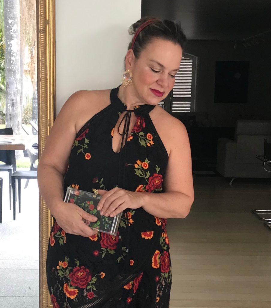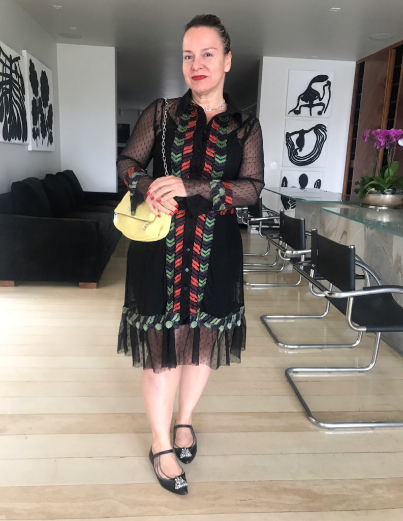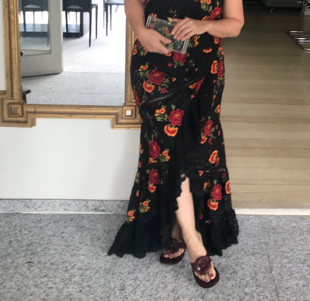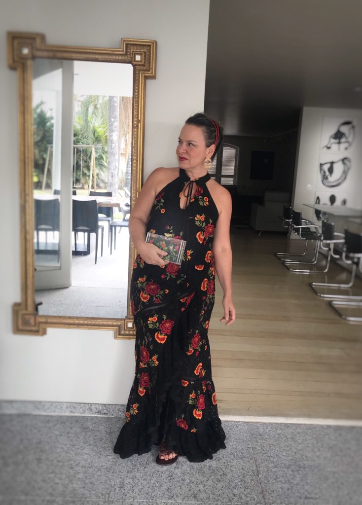 Já de uma 3a. vez, 3 anos depois , usei com rasteirinha e cabelo preso. O almoço era très chic , haja visto as convidadas.