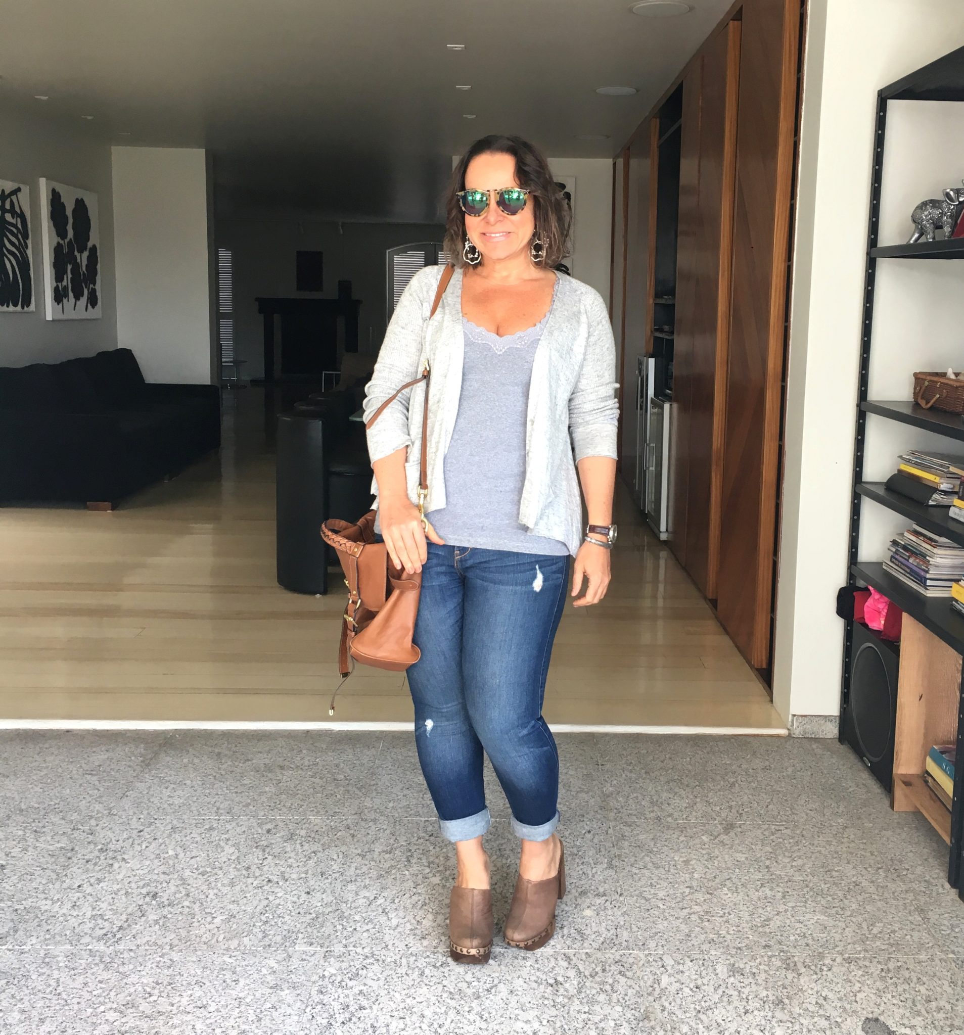 Ambiente informal, gostoso de ficar! Look jeans + tricô + mules.