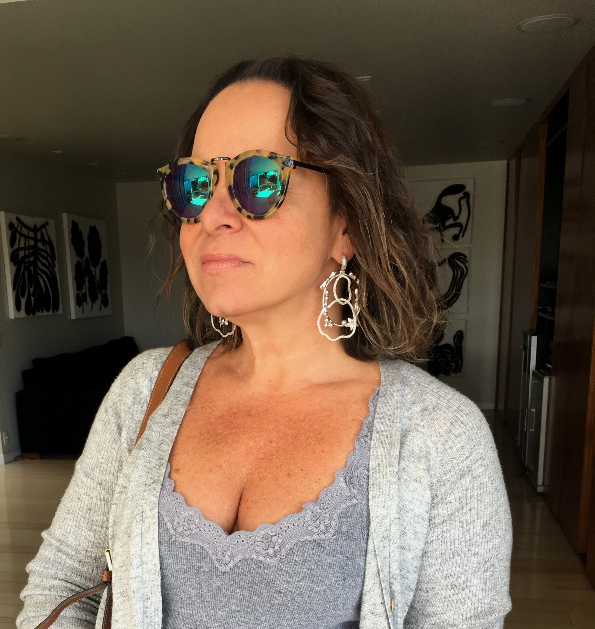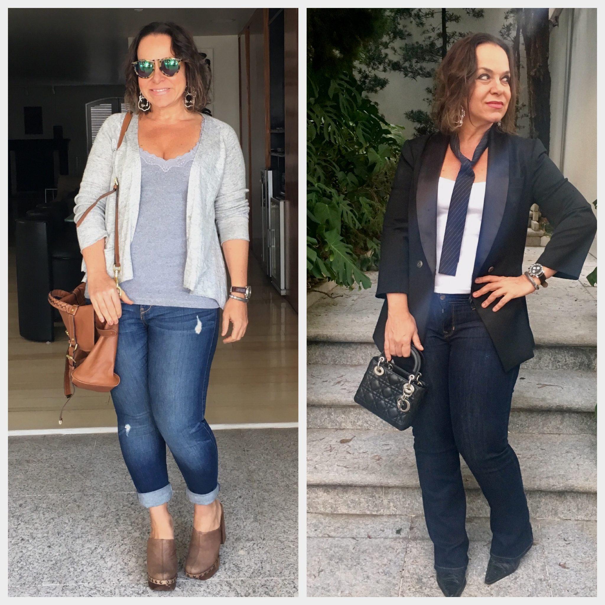 As mesmas joias foram usadas no dia seguinte, em um outro look jeans, dessa vez mais chiquetoso.