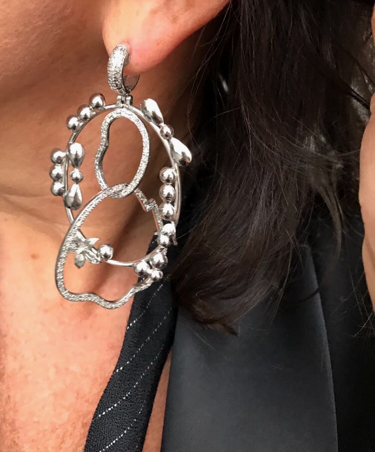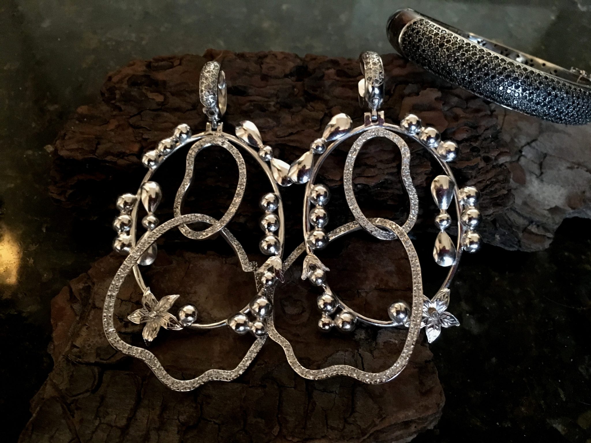 Brinco lindo em ouro branco e brilhantes + bracelete em brilhantes negros