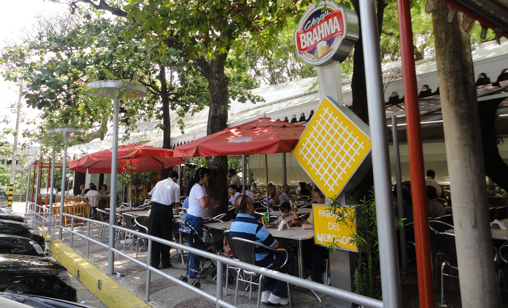 O PARRILLA fica dentro do Mercado Distrital do Cruzeiro, num clima de praia que envolve a gente em um alto astral de alegria.