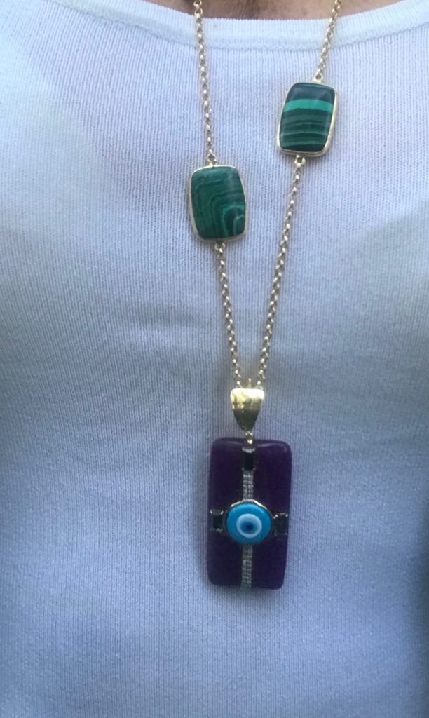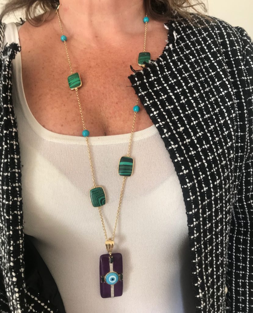 Várias vezes nessa viagem, vocês já me viram usando esse colar lindo em pedras coloridas, entretanto, sempre com looks de verão.