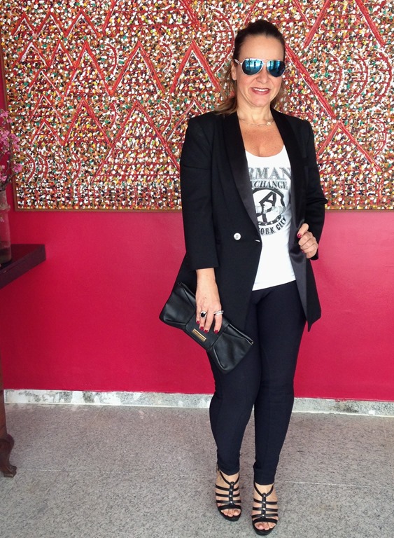 calça, blusa e clutch ARMANI EXCHANGE – blaser BOBSTORE – sandália PIERRE CARDIN