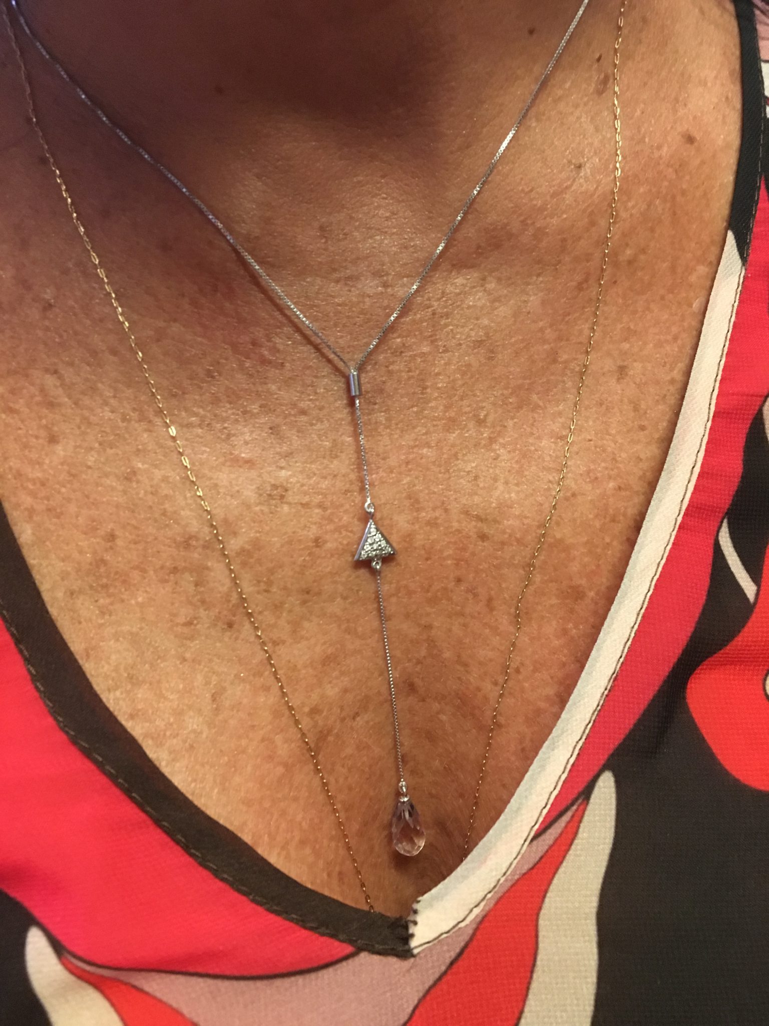 Fica jovial e moderno usar colares fininhos no dia-a-dia, tanto sozinhos como em composições com outros, com courinho, ou em várias maneiras que você mesma pode inventar. Ontem mostrei só um courinho com nó. Você ainda pode acrescentar outros. Fica lindo!