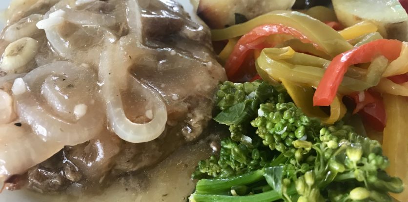 INGREDIENTES: ( vinha d’alho) vinagre, 2 dentes de alho socados, 1 colher (sopa) de sal, 1 folha de louro, 1/2 colher (sopa) de pimenta-do-reino – 1 lagarto inteiro de 3kgs, 100g de bacon, 2 cebolas picadas, 4 ramos de salsa, tomilho, 1 e 1/2 xícara de vinho branco. ( molho de cebola ) 1 colher (sopa) de manteiga, 1 xícara de cebola em rodelas, pimenta-do-reino, 3 colheres ( sopa ) vinho tinto, 1/2 folha de louro, 1/2 tablete de caldo de carne, 1 copo de água, 1 colher ( sopa) de maisena dissolvida em água