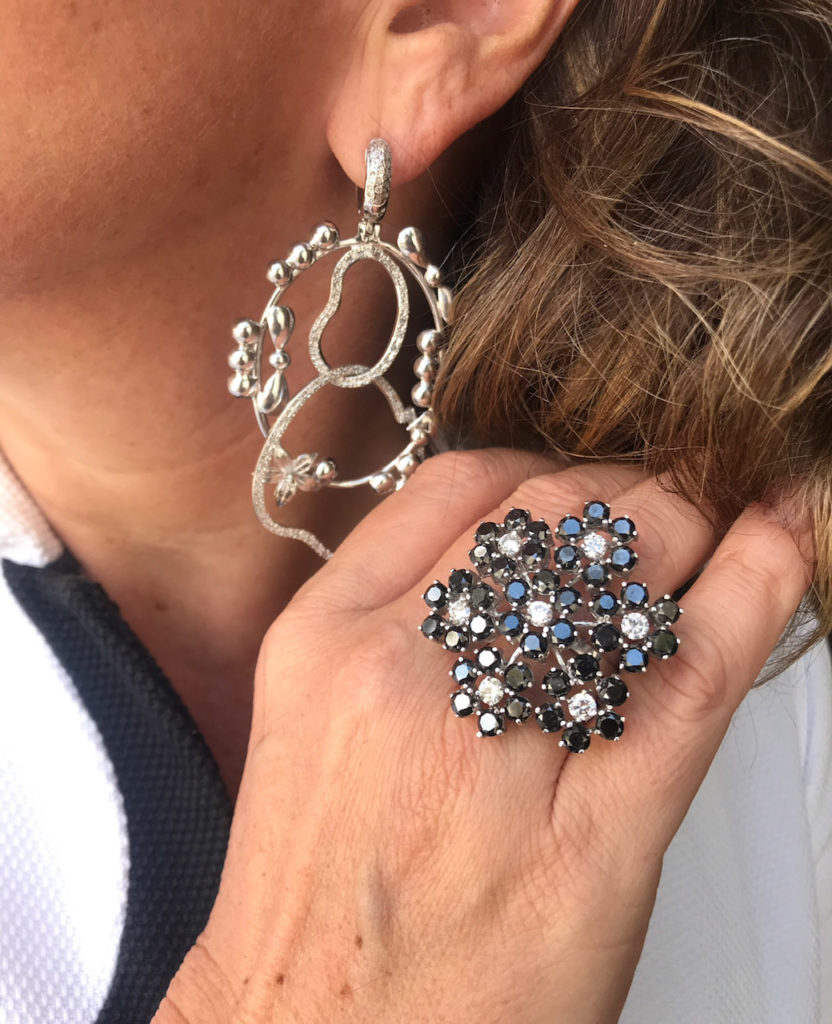 Esse look foi de maio, mas é bom ter essa oportunidade de mostrar aqui maneiras de repetir roupa sem ficar com a mesma cara. Dessa vez, usei complementos pretos e um brinco em ouro branco e anel em brilhantes.