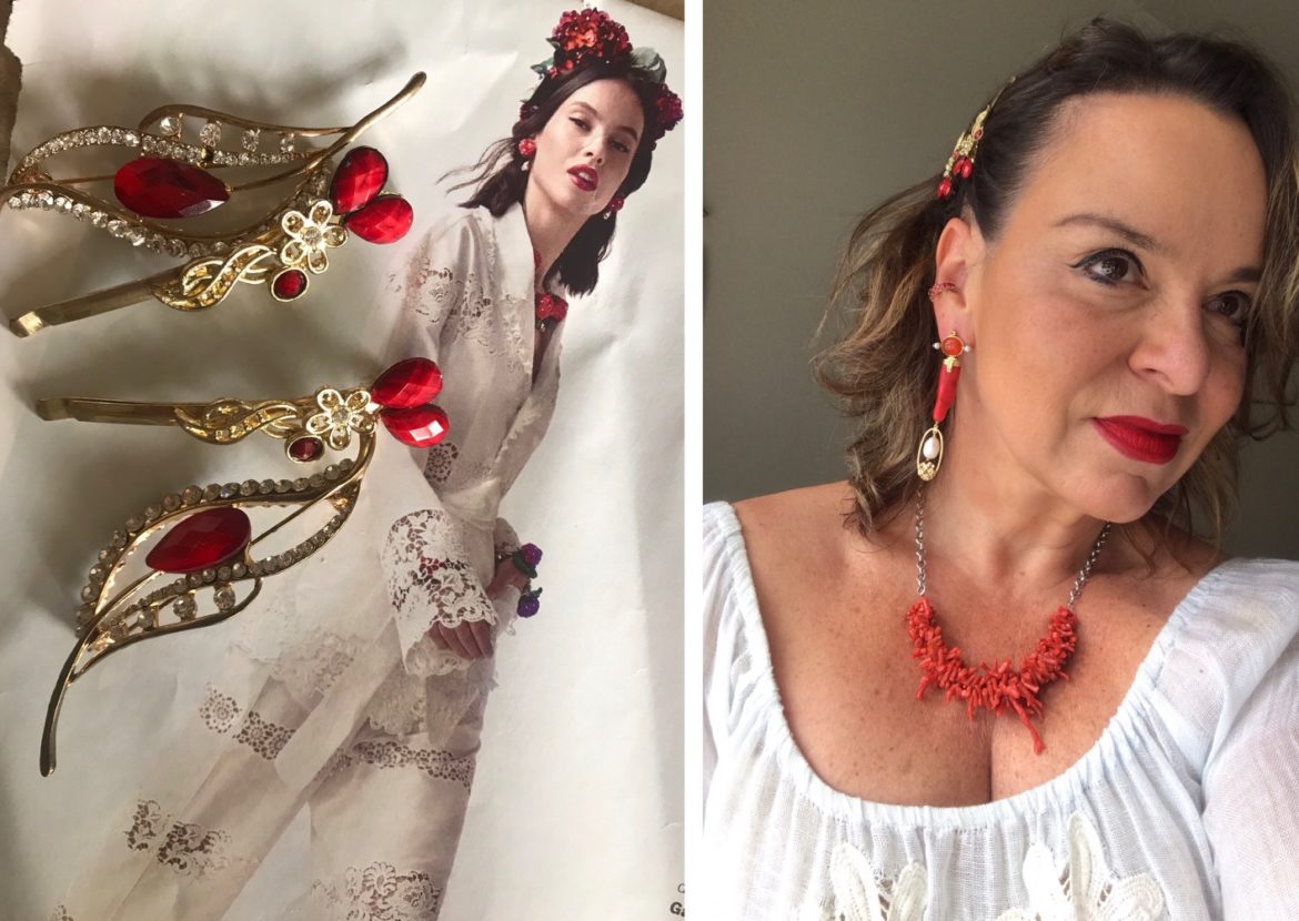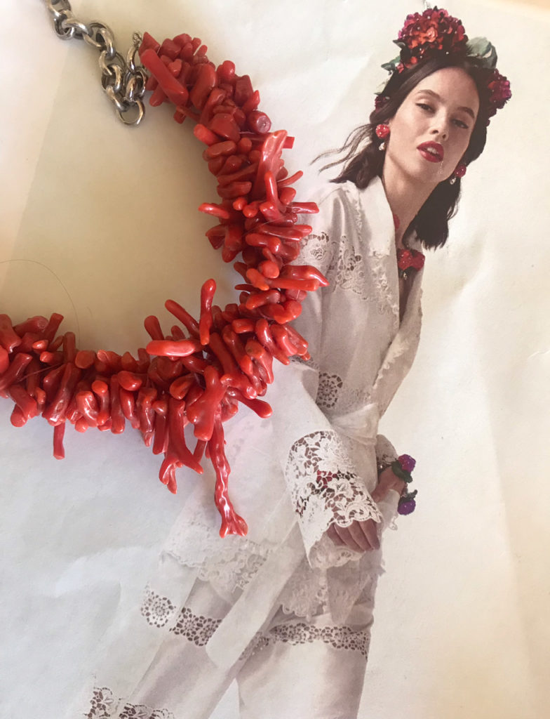 Joias em coral são muito típicas em Capri, assim como essas roupas brancas em cambraia com renda. Usando o que eu já tinha em casa, produzi meu look Capri-style, ainda com clutch de miçangas da LE LIS BLANC.