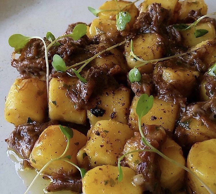 Dessa vez, escolhi fazer o NHOQUE DE BAROA COM RAGU DE RABADA , receita de PEDRO FRADE. Pedro é hoje o garoto mineiro que brilha na cozinha do restaurante VISTA em São Paulo . O toque de elegância foi oferecer 2 tipos de queijo já ralados – pecorino e parmesão – um capricho que certamente não custa nadica de nada!