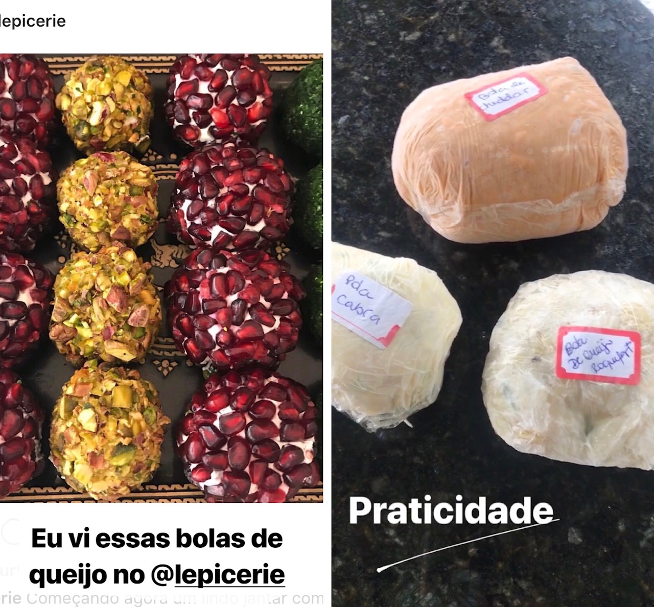 Essas bolas eu vi no insta do @LEPICERIE , para mim, dos melhores buffets do Brasil! Eu tinha uma receita da Revista de Natal da Martha Stewart ( VOCÊS QUEREM A RECEITA? ) e fiz também várias bolas que ficam prontas e são descongeladas quando vem alguém. Elas são bem bonitas e interessantes, mas se você comprar 3 queijos diferentes – Cheddar, Roquefort e Cabra – vai ter o mesmo resultado final de sabor.