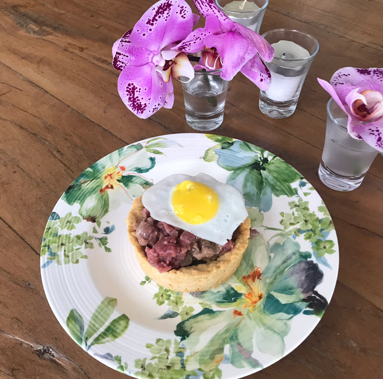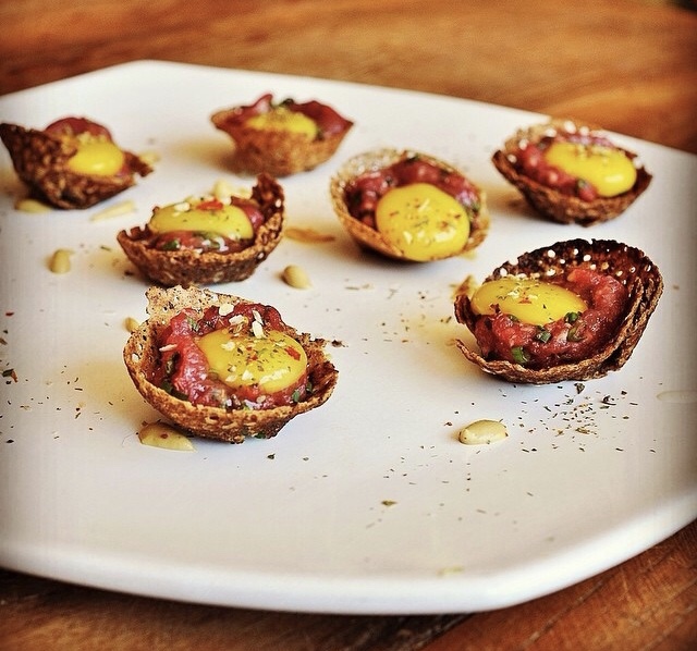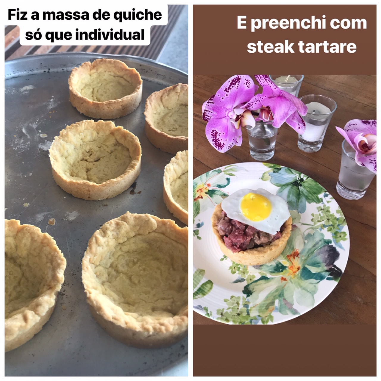 Vi essa entradinha – GALETTE DE TARTAR – no insta da @DANIELAFALCAO1 e fiquei doida para fazer. Fiz a massa de quiche da aula da Agnes e recheei com steak tartare.