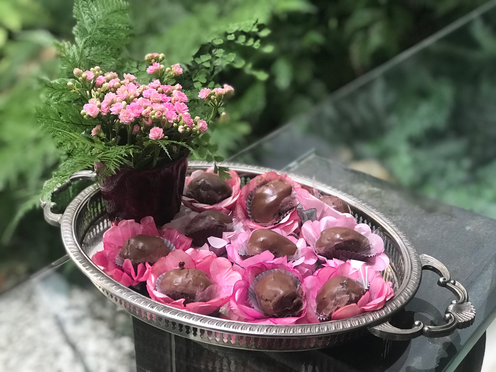Como eu sempre digo, às vezes uma boa idéia vale mais que uma boa receita. Nem sempre a gente tem o tempo que gostaria de ter para preparar 1001 coisas, ou às vezes a gente quer mesmo é ser prática. Vi essa imagem linda no insta de uma bandeja com um arranjo rosa e bombons.