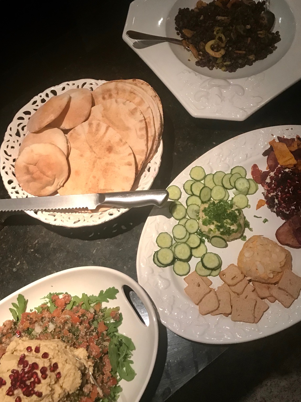 Dessa vez, progarmei 3 saladas frias. O TABULE COM HUMMUS é super prático ( receita no azul ). O tabule é facílimo e pode ser feito horas antes, enquanto o hummus pode ser até mesmo congelado. Fiz uma receita grande e guardei 3 porções. Não é prático? É só descongelar no dia de usar. Ah! Tudo pode ser comprado também, não só o hummus, como também o tabule. O mais importante é que agradam bastante!