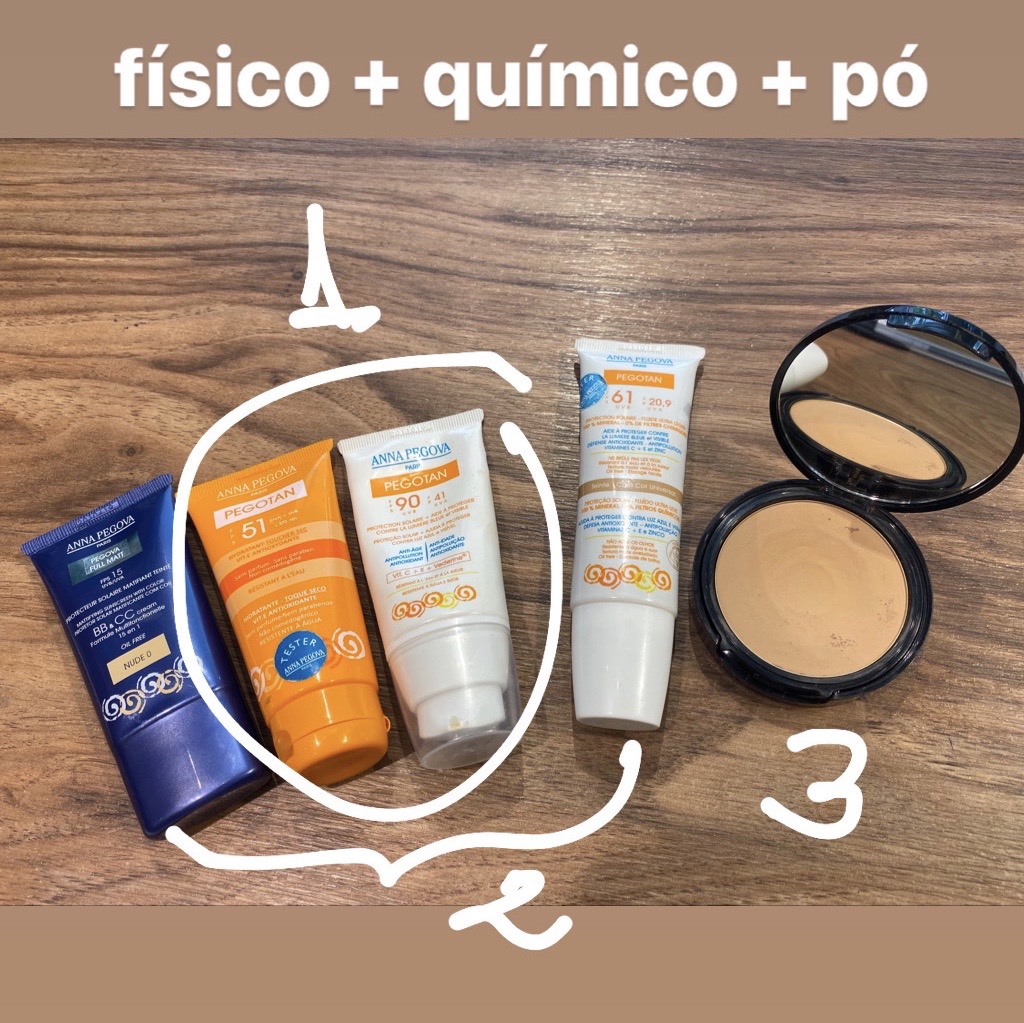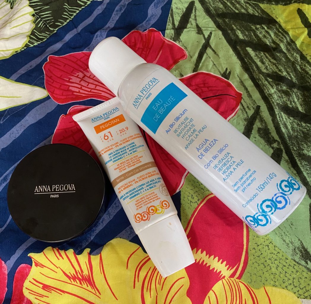 E u uso a linha ANNA PEGOVA e adoro! Dessa vez levei o protetor com cor 61 e o pó com FPS 54 para aplicar por cima. Mas, como estive hoje na Anna Pegova fazendo um tratamento pós-praia , aproveitei para saber tudo sobre cuidados para o verão para contar aqui para vocês.