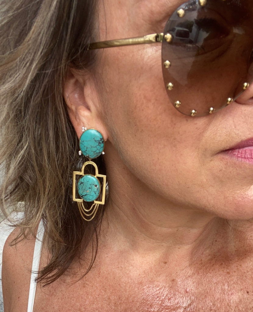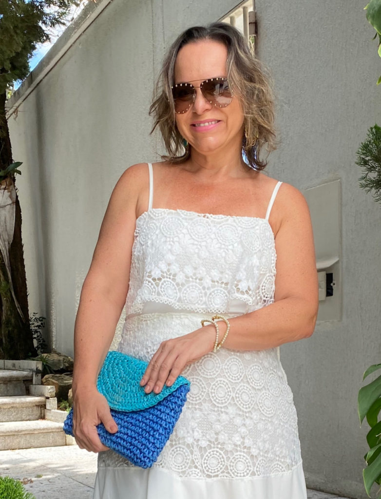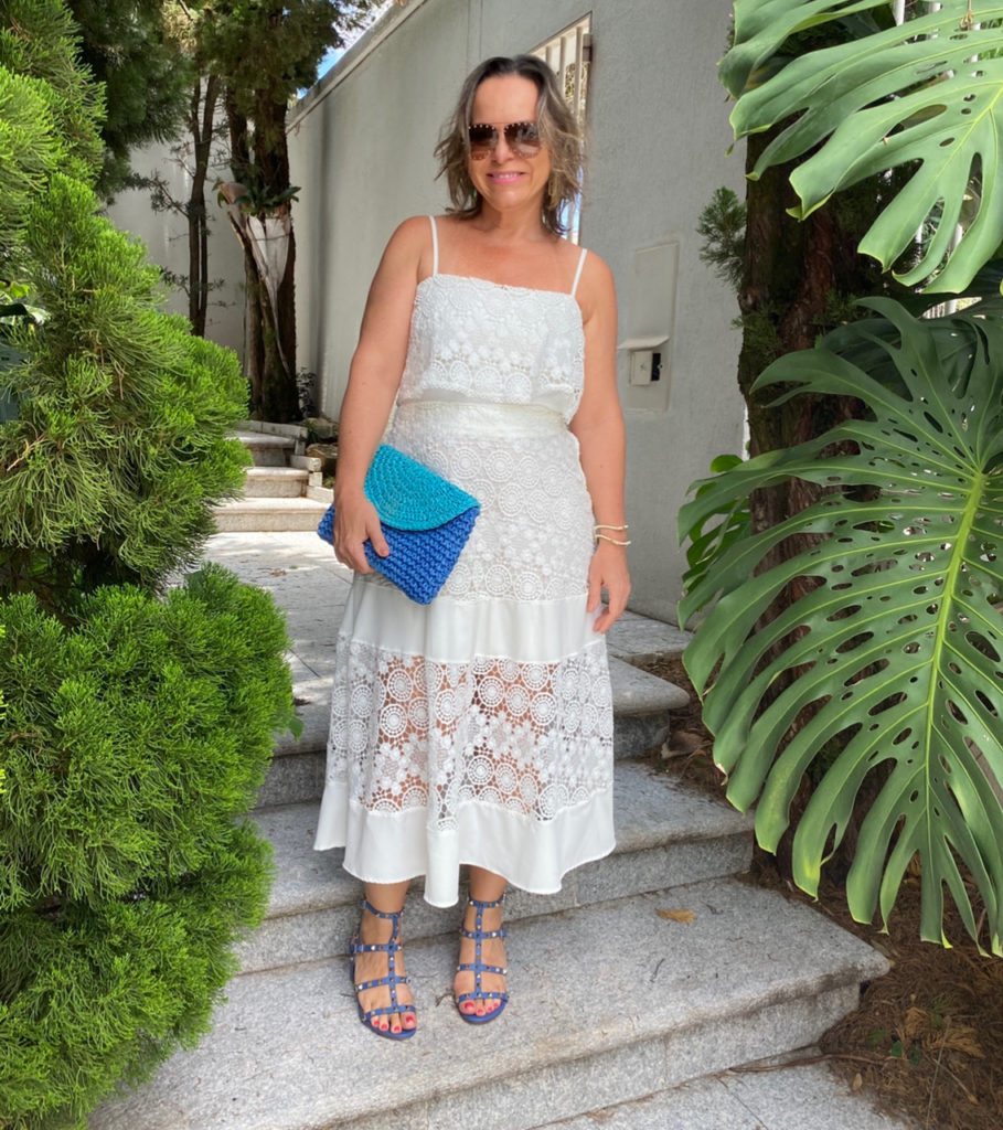 Tá quente, né? Coloque seu vestido bem fresquinho de verão e cuide bem da pele. Eu adoro usar branco e acho lindo com complementos azuis! Experimente usar turquesa no verão. O brinco é JOIAS PD .