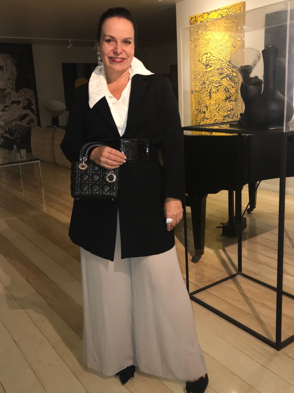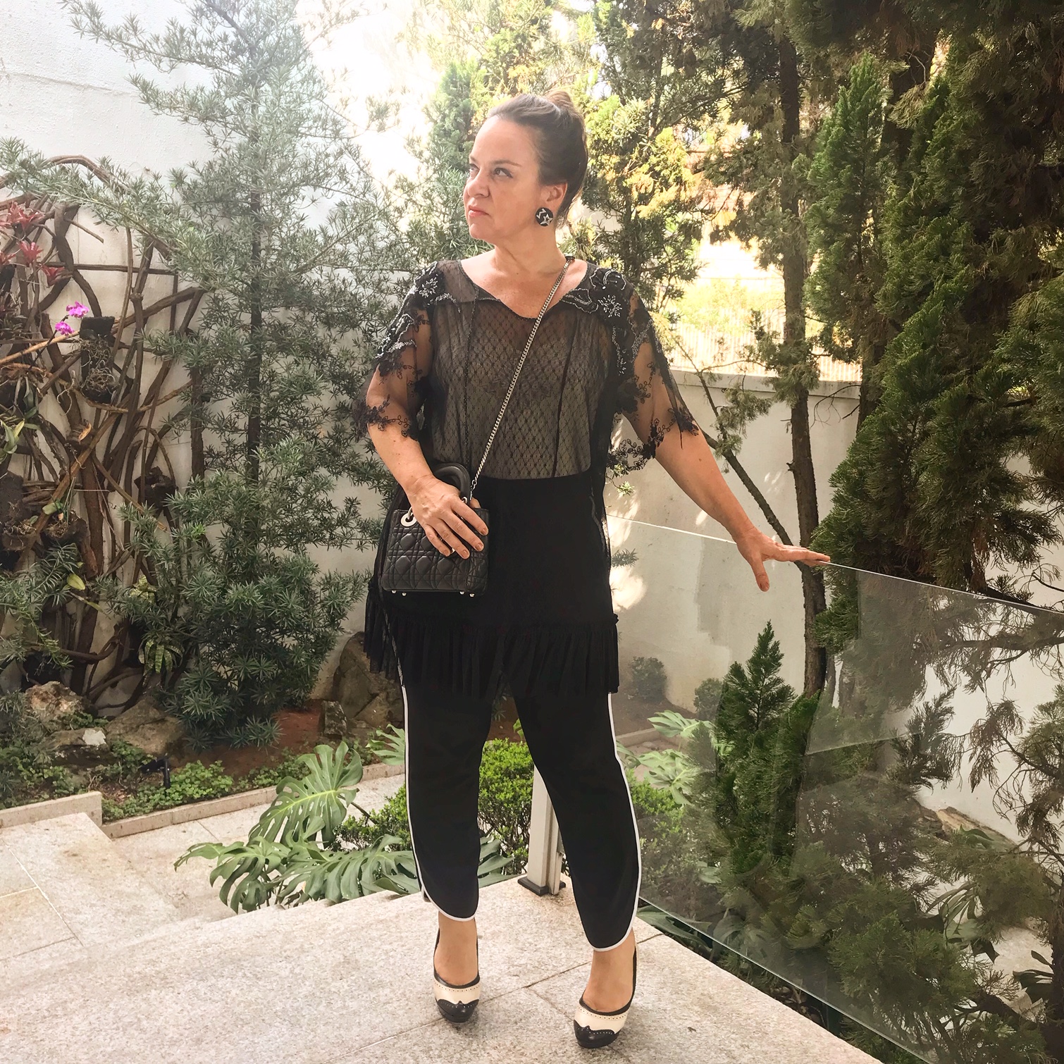 Adriana Macena, aliás sempre chiquérrima, adora usar esse coque alto displicente. Fashionista que é, não só estava com o cabelo do momento, como também a bolsa da vez – SADDLE BAG da Dior . O colar ? JOIAS PD! Linda, né?
