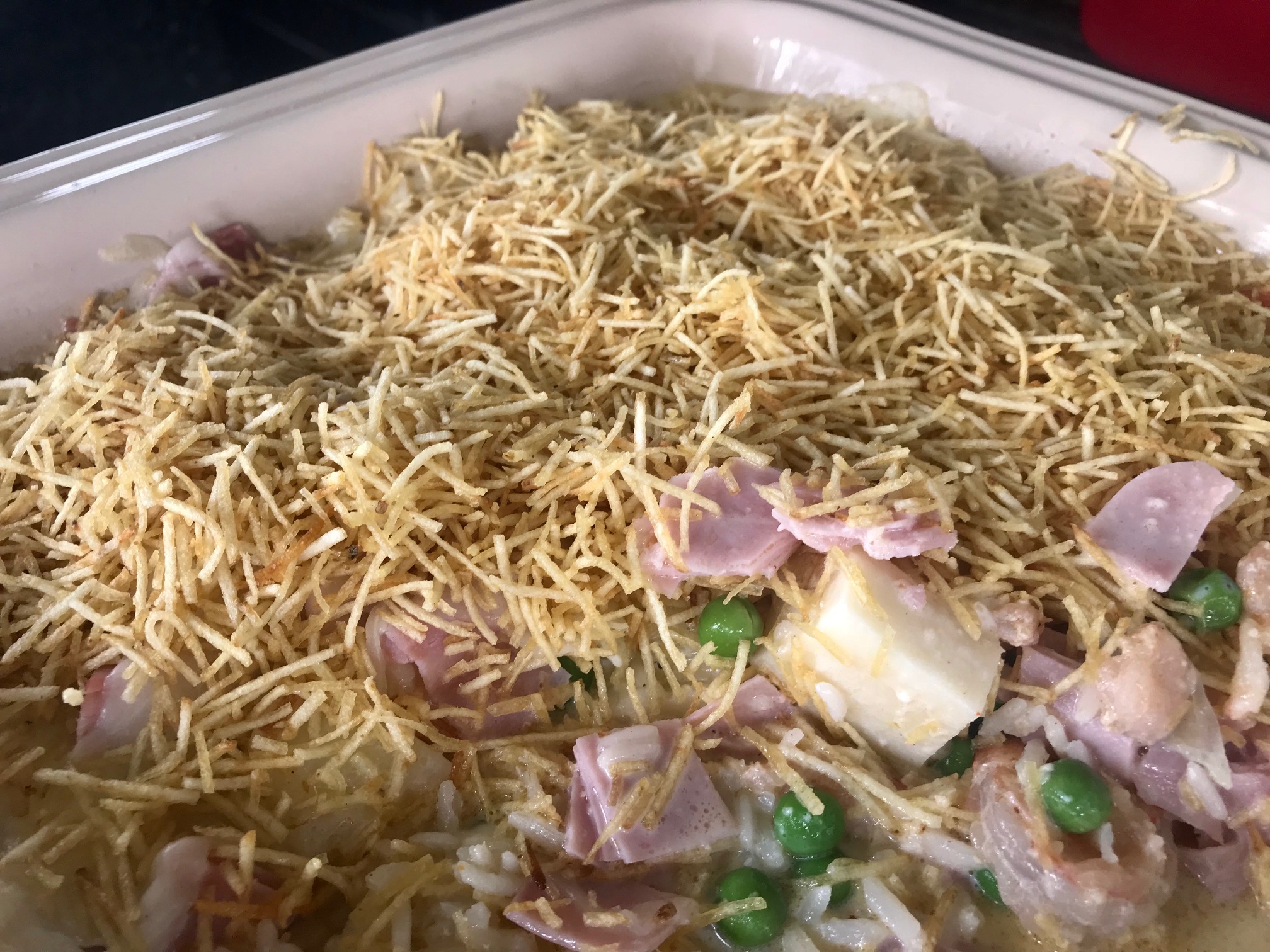 Leve ao forno por 15 minutos para gratinar e adicione por cima a batata palha antes de servir.