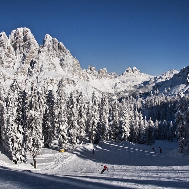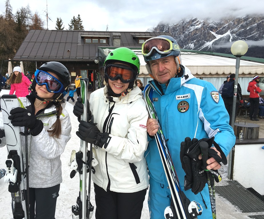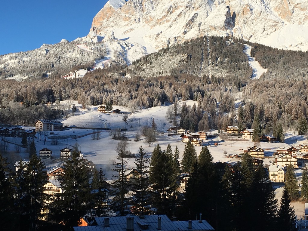 Cortina possui boa infraestrutura turística, com hotéis de primeira linha ( CRISTALLO é o mais famoso) , restaurantes, bares e comércio. Quem não esquia – como eu – fica pelo centro, spa do hotel, etc etc // Nesse dia, fui conhecer as pistas com as filhas. Lindo!