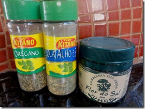 Troquei os tomates assados por mini-tomates temperados , para não repetir o do Taste Vin. Temperei-os com azeite, sal, manjericão, alho em flocos e pimenta calabresa. Salaminho Italiano e queijo de cabra em azeite temperado,ambos do VERDEMAR. O salmão eu grelhei em azeite,alho em flocos e ervas .As abobrilhas grelhei tbém em azeite, misto de cebola,alho e sal, flor de sal com funghi e depois de pronto, reguei com azeite trufado.