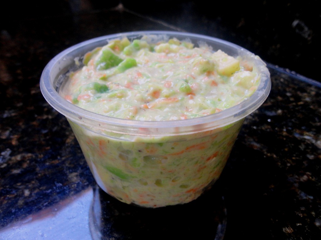 INGREDIENTES : 2 caixas de gelatina de limão – 2 colheres ( sopa ) de gelatina em pó sem sabor – sal e pimenta-do-reino – 2 xícaras de água fervente – 4 colheres ( sopa ) de vinagre – 2 xícaras de maionese – 2 colheres ( sopa ) de mostarda – 4 xícaras de repolho ralado no ralo grosso – 1 xícara de maça ácida picada em cubinhos – 1 xícara de cenoura ralada no ralo grosso