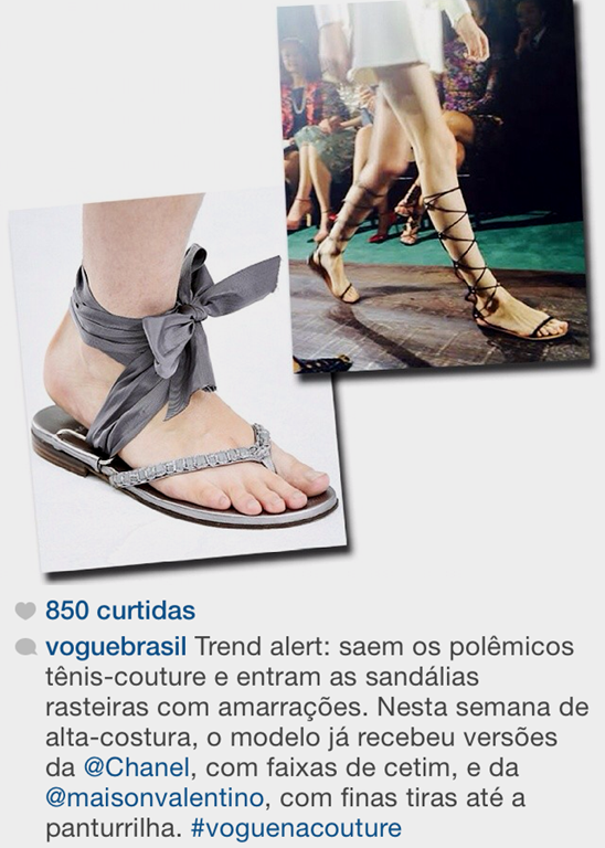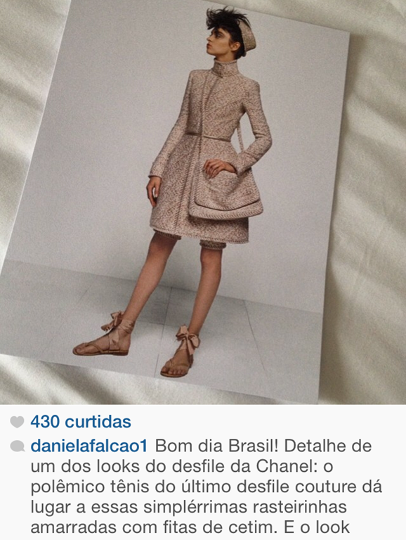 * Quem acompanha moda de perto, viu os desfiles da alta costura de Paris na semana passada. Acho incrivel ver o luxo da moda em si, mas também dos cenários, das jóias , das convidadas e de tudo que cerca esse haute monde. A CHANEL desfilou seus looks dessa vez com rasteirinhas com um laço enorme no tornozelo. E eu amei! Achei cool, confortável e novidadeiro.