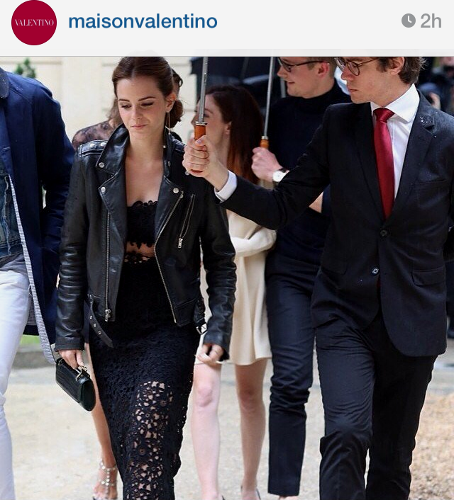 * Outra que arrasou e atraiu todos os flashes na 1a. fila do VALENTINO foi a EMMA WATSON , com um look simples de renda preta, jaqueta de couro e brinco em uma orelha só. Lembram da dica do Bruno Astuto na coluna da VOGUE JULHO ? Ele sempre acerta na mosca, né, gente?? Vale sempre conferir!