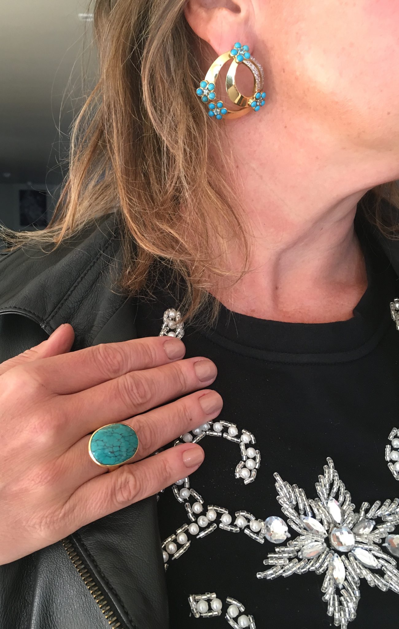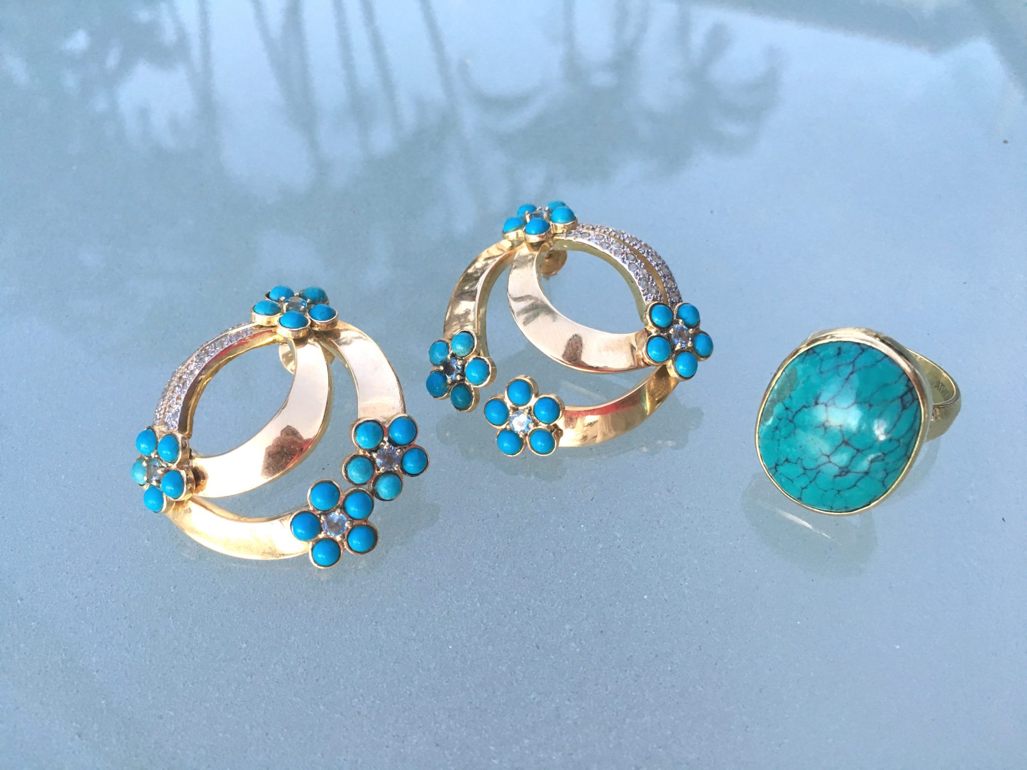 anel em ouro amarelo e turquesa —10 x 310,00 = 3100,00
