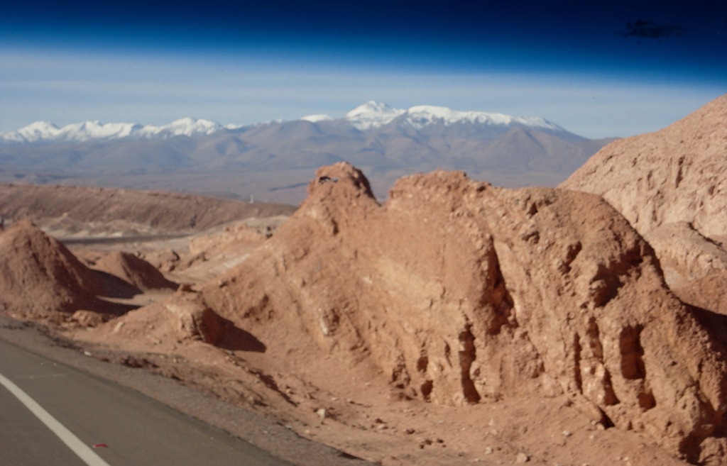 O trajeto é inóspito – nada no meio do nada – deserto com Andes ao fundo !