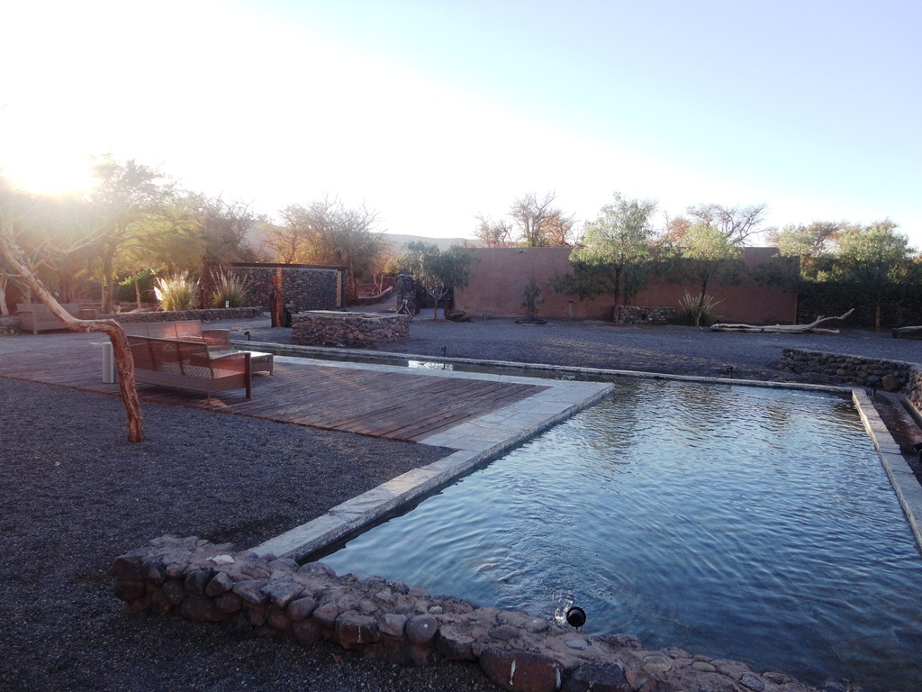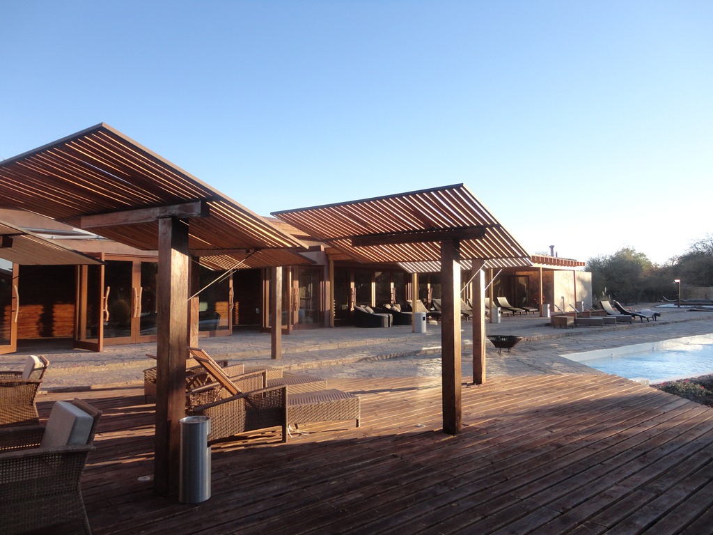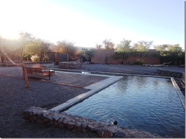 Ficamos no KUNZA HOTEL , um dos 5 * do povoado. Interessante notar que os hotéis se integram à paisagem do deserto,respeitando os materiais locais ( pedra, madeira, couro,  adobe e palha) e as regras ecologicamente corretas de construção sustentável.