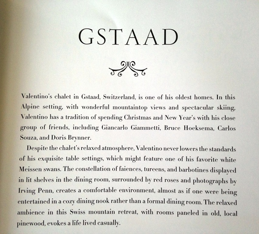 Seguimos agora com mais diversão , com a riqueza de Valentino em toda a sua arte de bem receber – dessa vez, no seu chalé de inverno em GSTAAD , onde ele passa Natal e Ano Novo com a troupe que ele chama de family! –  Enjoy!