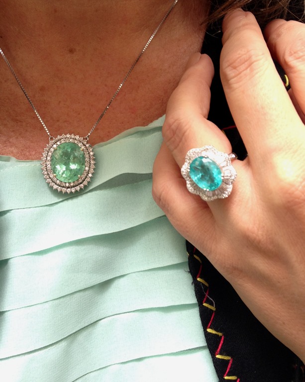 O vestido tinha EXATAMENTE o tom das turmalinas-paraíba, por isso, minha escolha !