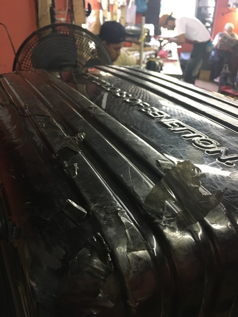 Pois foi o que eu fiz logo após chegar de Jericoacoara. Levei uma mala TUMI para trocar os fechos ( a pecinha de puxar! ) e levei essa BENETTON para dar uma geral. Ela estava descascando por fora e tinha quebrado a alça.