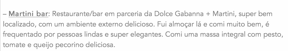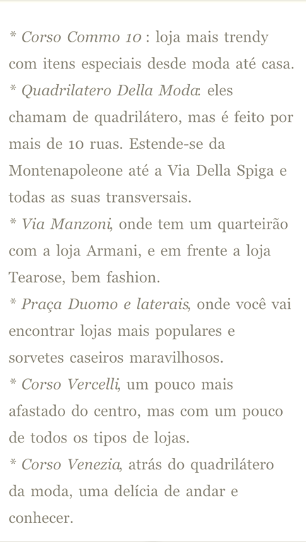 DICAS DA CAROL CELICO ( esposa do jogador Cacá – moraram anos em Milão )