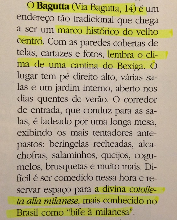 Não fui no Armani Silos, e desses restaurantes, fui na Trattoria Bagutta. É uma linda cantina no quadrilátero da moda. Vale super a pena pelo lindo lugar e pela comida.