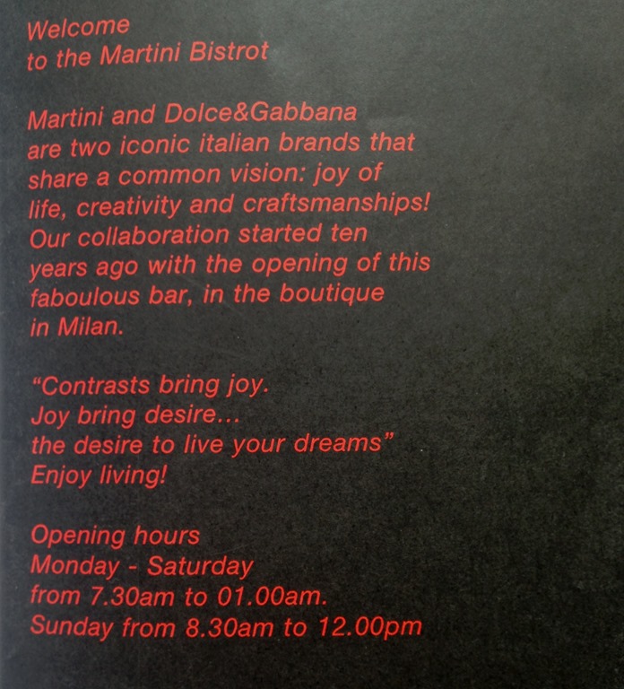 Ao lado dela , fica o MARTINI BAR DOLCE GABBANA , dica da Anna Fasano: