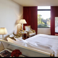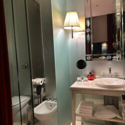 Os quartos são luminosos , com amplas janelas que proporcionam vistas panorâmicas da cidade e do rio, mas espere mais glamour do que conforto em si. O banheiro não tem paredes, são apenas divisórias de vidro com cortinas vermelhas de veludo.