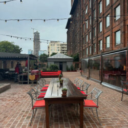 O hotel foi construído onde havia um antigo moinho no início do século 20, por isso, a altura dos tetos, as características industriais e os tijolinhos vermelhos vindos da Inglaterra.