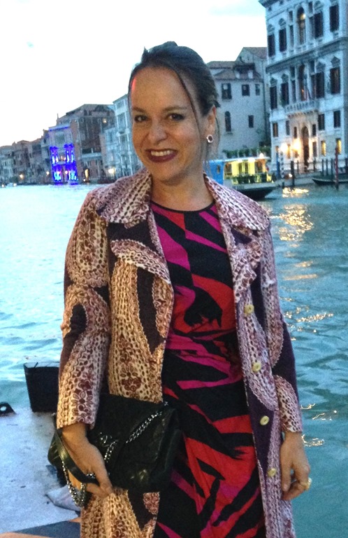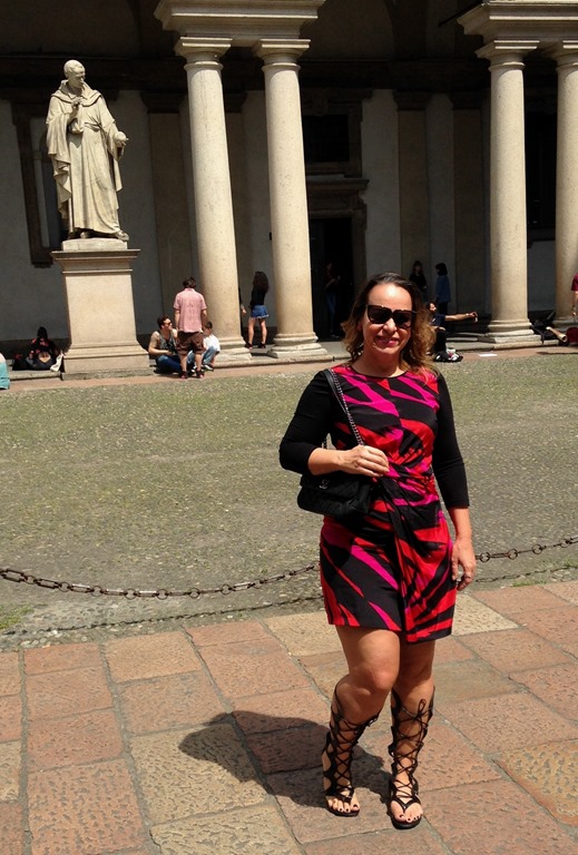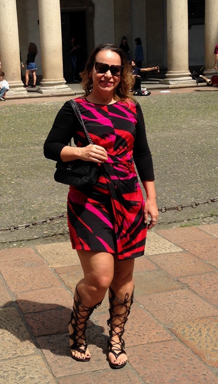 vestido DKNY já tinha passeado à noite em Veneza e voltou aqui em look dia com gladiadora AREZO e JÓIAS PD.