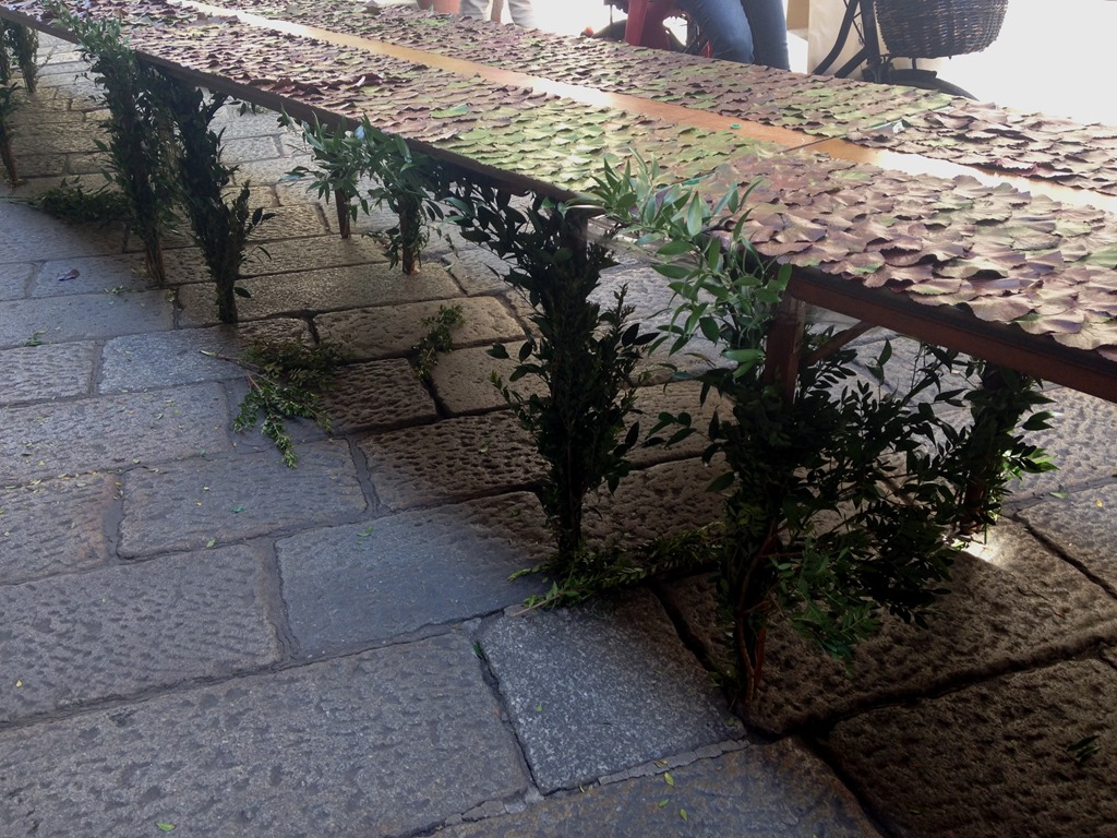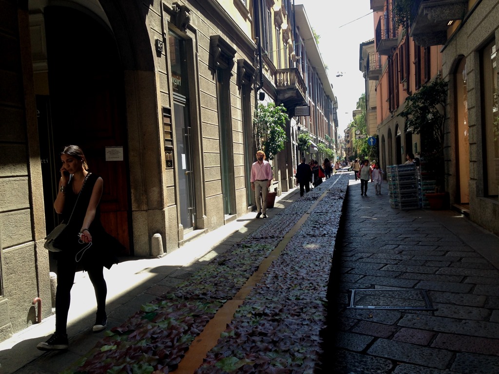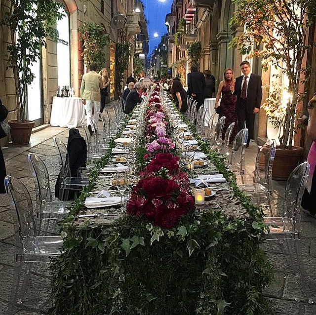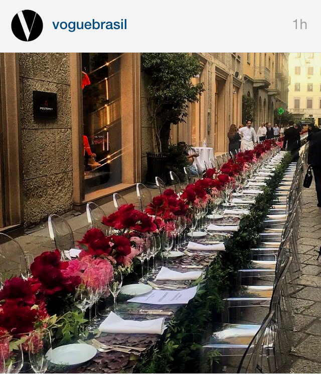 Olha o que eu vi passando exatamente na porta do Four Seasons – Estavam montando uma mesa gigantesca de 500 m na Via Spiga para um jantar para 1000 pessoas que aconteceria ali ás 19 horas – Igual de filme! Nunca tinha visto ao vivo! ![]()