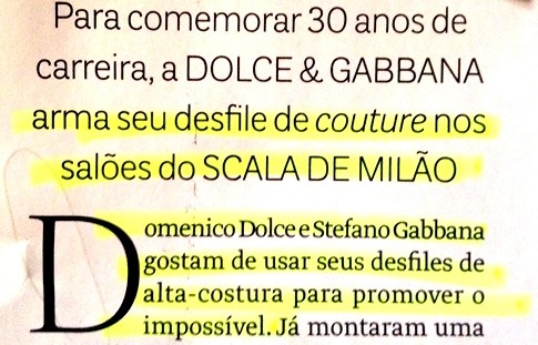 E por falar em Jóias, e por falar em Milão, não tem como não falar da dupla DOLCE GABBANA. Eles não param, e a loja deles ali é simplesmente bárbara! Worth a visit! A VOGUE inclusive destacou a alta joalheria deles, toda inspirada nas óperas!