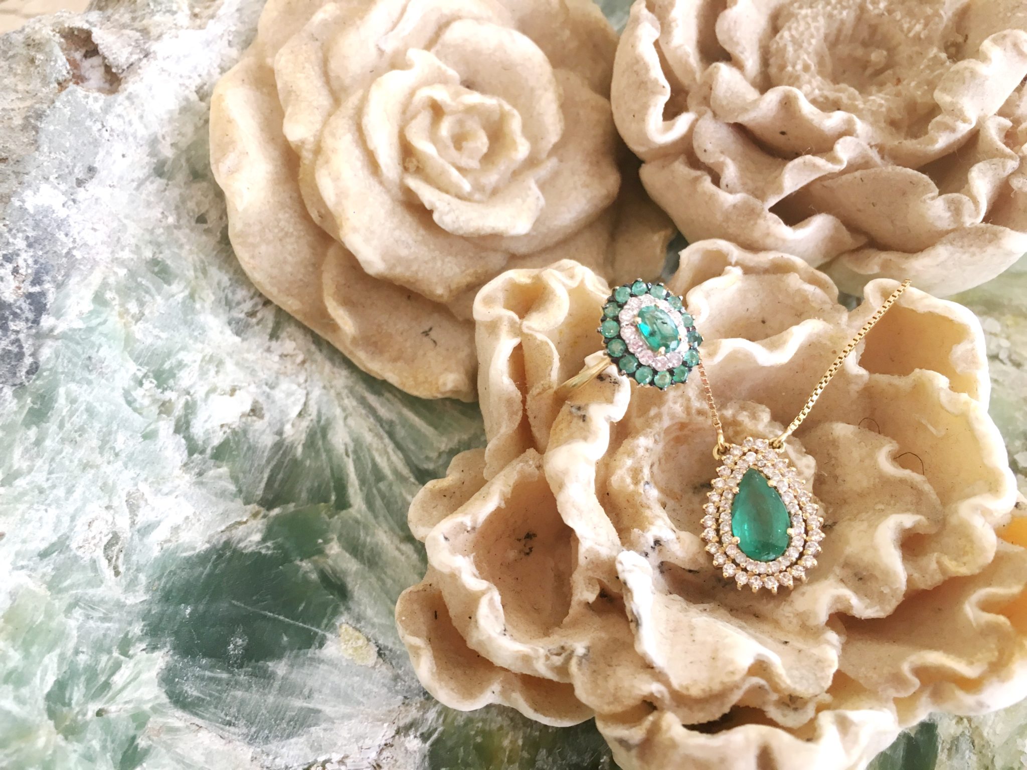 JÓIAS PD em esmeraldas e brilhantes —- anel ( 10 x 260,00 = 2600,00 ) /  colar ( 10 x 880,00 = 8800,00 )
